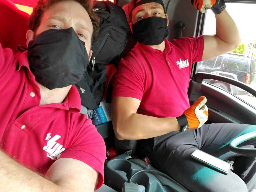 The teams on our trucks are required to lift heavy objects, a task that could be hazardous to their physical safety if not done correctly. That’s where training in proper lifting techniques comes into play. We teach our team members to prepare for heavy loads, asking them to think about how best to lift and maneuver objects like pianos, sofas and refrigerators. We look ahead to the pathway to clear any obstacles, prepare for steps up or down, and talk about proper body position. Lifting, carrying, and even setting down a heavy load can tax the body in different ways. Working together with their teammates is the best way to avoid physical injury from heavy loads.